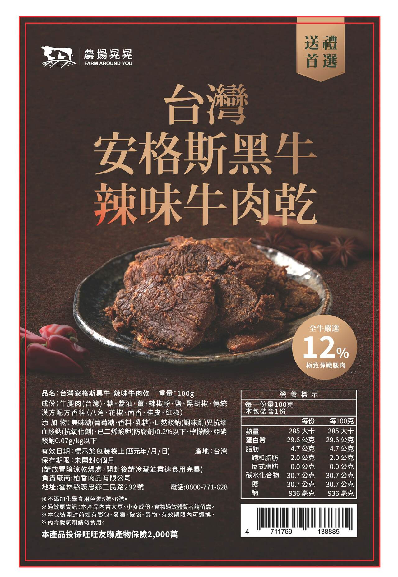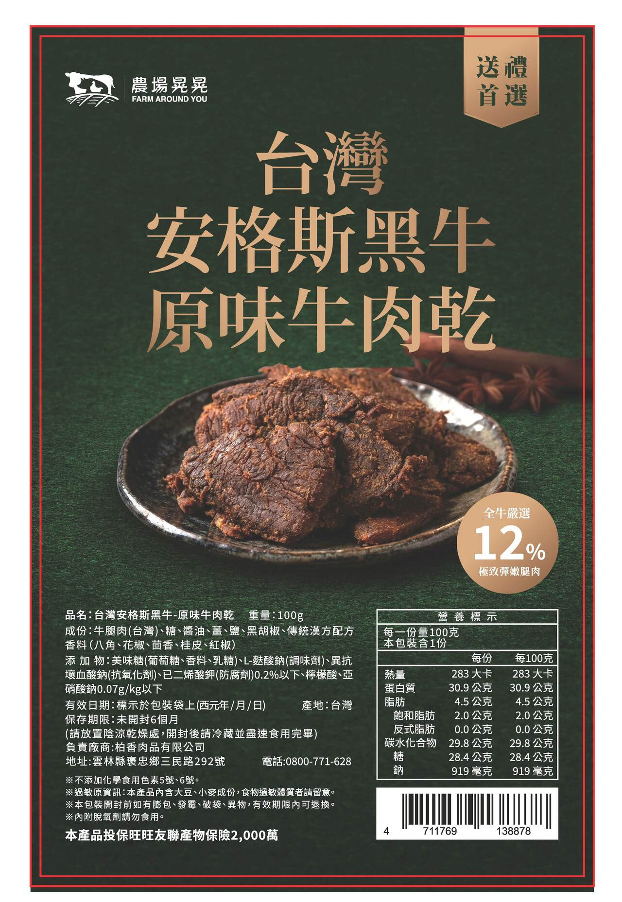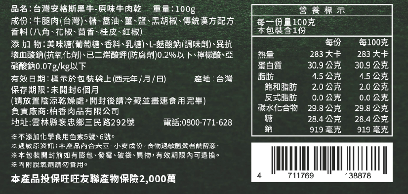 回到牛肉本身的純粹滋味 選用台灣在地飼養的安格斯黑牛,肉質細緻、油脂分布均勻。 我們只取適合製作牛肉乾的部位,經低溫慢烘,完整保留牛肉纖維與自然肉香,不以過多調味掩蓋風味,呈現最純粹、耐嚼卻不乾柴的口感。 這是一款為懂吃牛肉的人準備的原味牛肉乾。